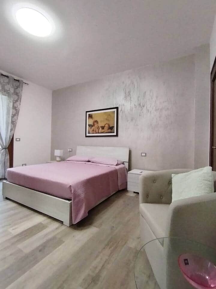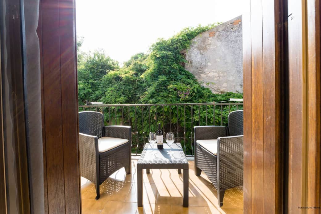 Ampia stanza arredata a nuovo, con terrazzino arredato, TV e aria condizionata. Il bagno esterno alla camera è ad uso esclusivo dei clienti della camera Giulia. (I.U.N. F1555)